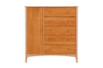 The Burlington Horizontal Wardrobe by 802 Furniture beautifully showcases the craftsmanship and natural beauty of Vermont-made furniture. The collection was showcased by a graceful cherry-and-maple sleigh bed, complemented by matching dressers, mirrors, chests, and a cherry-and-maple Horizontal Wardrobe, complemented by a matching set of dressers, mirrors, chests, and nightstands. This collection blends timeless elegance with modern simplicity. Each piece is carefully built by local Vermont craftspeople who take pride in working with solid hardwoods and traditional joinery techniques. The warm cherry tones contrast gently with the lighter maple frames, highlighting the natural grain and character of the wood. As part of the 802 Furniture line, the Burlington Horizontal Wardrobe can also be customized in size and dimensions to fit your unique space, ensuring both beauty and functionality in every bedroom.