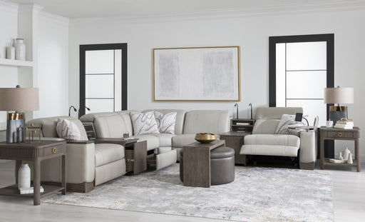 The Solana Group includes a Sofa-Chase configuration with a storage chaise with a lift-up wood tray arm for eating/working, P1 Swivel Gliderand a 3...