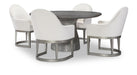 Angular modern shapes,, organic textures and mixed materials combine with a gray,, cream,, and metallic color palette to create a crisp modern look in the Terra Luna whole home furniture collection. The deeply wire-brushed Nightfall finish gives a tactile,, dimensional texture,, contrasting with the White Cloud case fronts and upholstery and metallic-finished table and chair bases. Over scaled,, jewelry-like Polished Nickel hardware adds a glam touch. The clean silhouettes paired with natural color tones and organic textures give a minimalist yet inviting appeal.