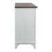The two-toned wire brushed white finish with charcoal top adds a taste of vintage, allowing this piece to work from the mountains to an industrial loft. The charcoal top is accented by planks while the white base is highlighted by bead molding and antique pewter hardware. Crafted of rubberwood solids with cathedral white oak tops, this piece features fully stained interior drawers, full extension drawer glides for easy access to storage, felt lined top drawers, and is anchored by tapered feet. Style uncompromised with storage abound, enjoy the ample drawer storage, each equipped with bottom case dust proofing.