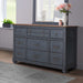 The Americana Dresser boasts a refreshing coastal twist on traditional style. Skillfully crafted from Rubberwood Solids and Birch Veneers, the subtle distressing Corduroy Blue finish and Antique Pewter hardware give this Dresser an updated look with a timeless heirloom feel. Featuring nine soft-close drawers, felt lined top drawer and felt lined jewelry insert, this Dresser will provide ample storage space for clothing and accessories. Just like Baseball, Apple Pie and Rock & Roll, the Americana Sofa Table will become a beloved favorite in your home. Fully assembled upon arrival, this piece from Bridgevine Home is ready to unbox and enjoy.