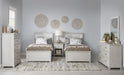 The Ashton youth collection is a unique blend of style elements that give a modern bohemian vibe. Details such as thick framed drawer fronts,, shaped feet and plank details on beds all blend well. Features can be found throughout the group,, such as touch lighting on beds and a cool bookcase headboard with shelf storage on the sides of the headboard. The Bleached Linen finish on White Oak veneers offers a subtly beautiful tone. Brushed Nickel hardware completes each piece.