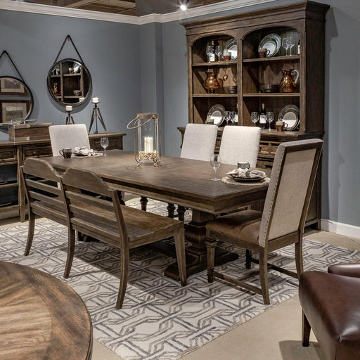 View full detailsLindsey Farm - 7 Piece Trestle Table Set - Brown / Dark Brown