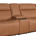 Indulge in luxury with the Chase motion collection. The slender and alluring silhouette features a moderately scaled welted track arm with a decorative outside arm panel, a tall divided back with power headrest, power lumbar, and power recline with contoured for comfort seating, and waterfall-chaise and a Zero Gravity mechanism, all of which makes the Beatty collection suitable for small or large living spaces. The outside arm power control includes USB & USB-C charging ports, independent function allows for personalized comfort and the close button will return all functions to a closed position. Additional features include a drop-down table in the center back of the sofa with a hard surface, cup holders, and USB & USB-C charging ports. Dressed in an ultra-soft, corrected, natural grain leather/vinyl application with a subtle two-tone savage pattern and a low sheen finish coat makes Chase suitable for active family environments.