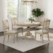 Be distinctively different with the Summer House pedestal table set. Crafted of poplar and rubberwood solids, this set features a finish. The table features step molding and includes a 12” removable leaf, all anchored by a decorative turned pedestal base that flows into shaped splayed feet. The chairs have a decorative splat back, a padded upholstered seat in linen, and beautifully round turned legs with nylon chair glides to protect your flooring. With cottage design always in fashion, the Summer House collection would make a great addition to any home.