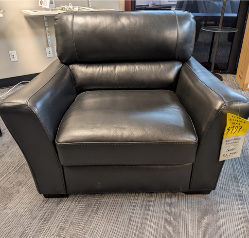 Black leather with match accent chair. Dimensions: 44'w X 39'd X 26'h
