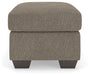 Transitional and right on trend. This ottoman's upholstery is a delightful change from the ordinary, with hints of soft brown giving the gray hue added depth. Whether you're hosting friends and family or relaxing solo, this ottoman invites homey, comfortable character into your space.